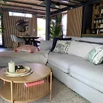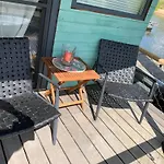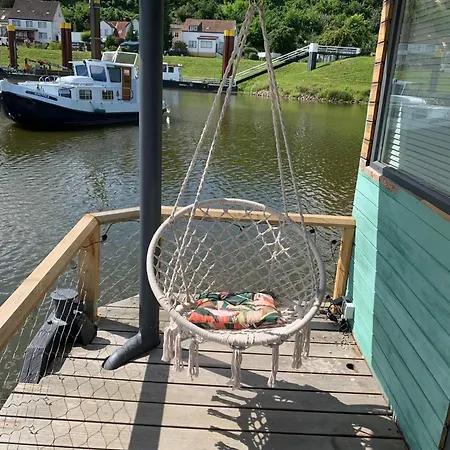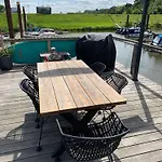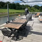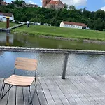 Zapewniono również wyposażony aneks kuchenny wraz z lodówką i płytą grzejną. Ten apartament dysponuje także tarasem z widokiem na rzekę.